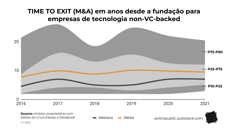 Quanto tempo uma empresa de tecnologia leva desde a fundação até o exit?