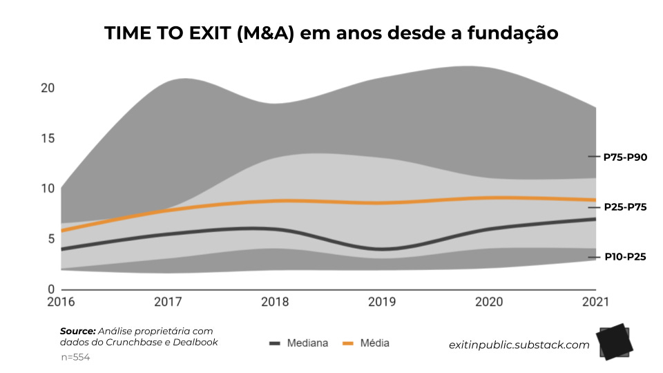 No contexto deste estudo, preferi explorar o tempo da fundação até o exit.